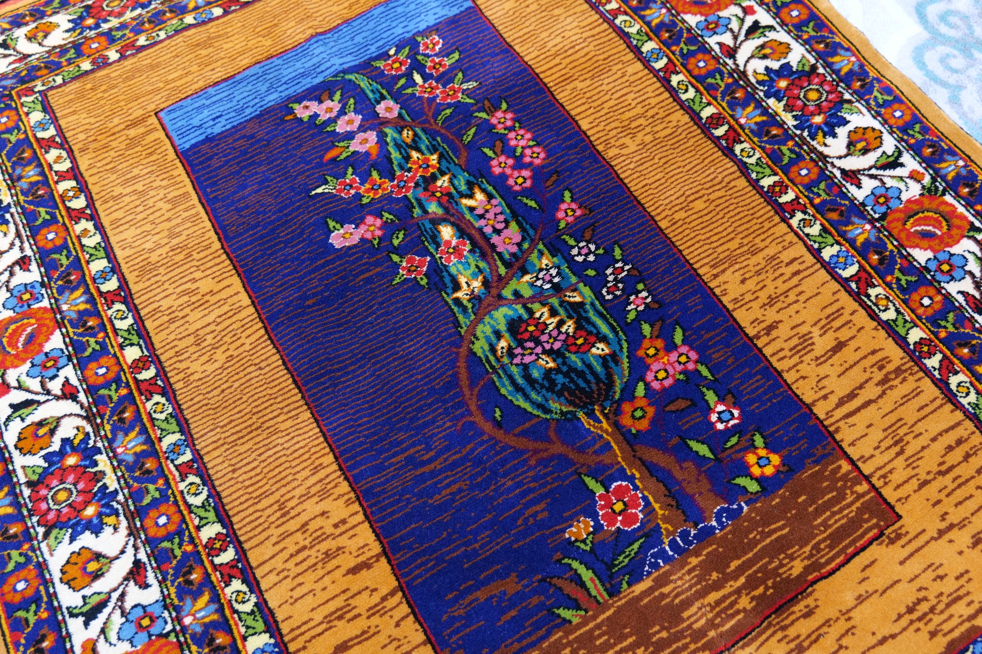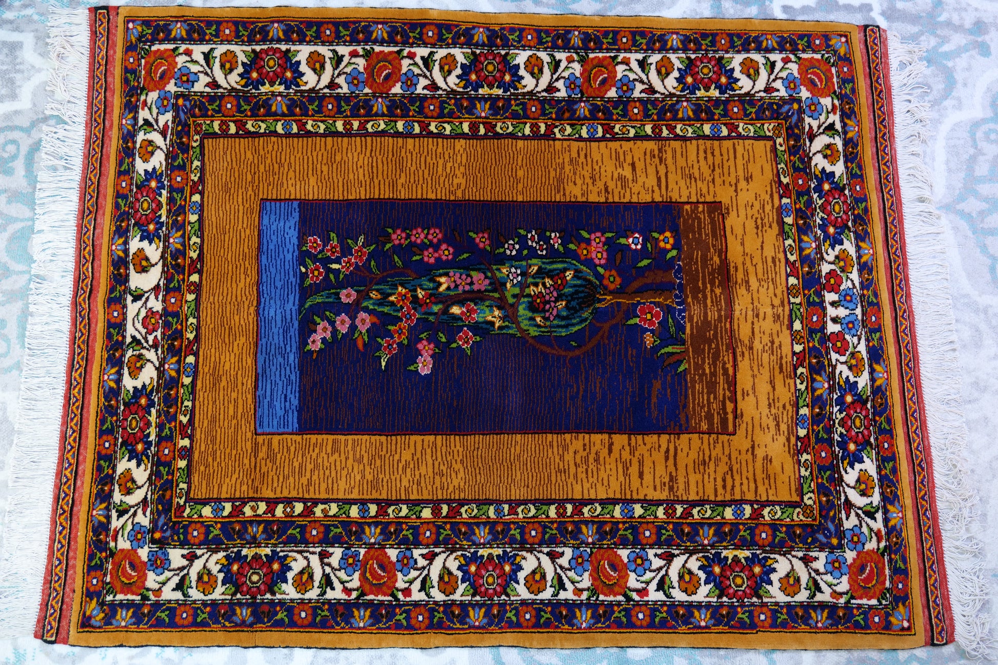 58" x 43" Intricate Flowering Tree Handwoven Area Rug from Afghanistan