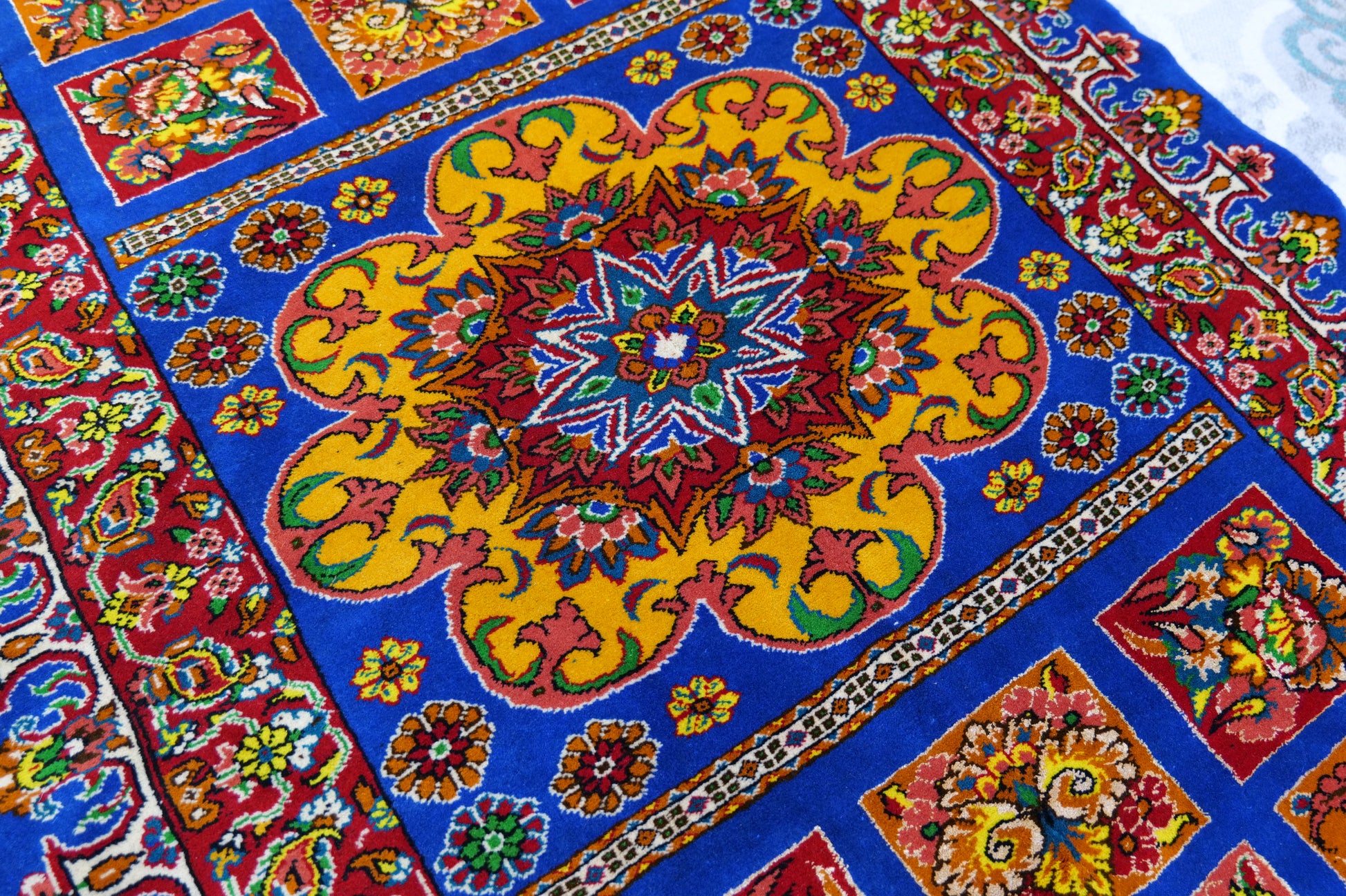 This 63" x 41" handwoven area rug from Afghanistan showcases intricate geometric patterns that reflect traditional craftsmanship. Its detailed design and expert weaving technique make it a distinctive piece, ideal for adding cultural depth and refined texture to any living space. Durable and artfully crafted, this rug combines aesthetic appeal with lasting quality. Ethically Sourced from Afghanistan.