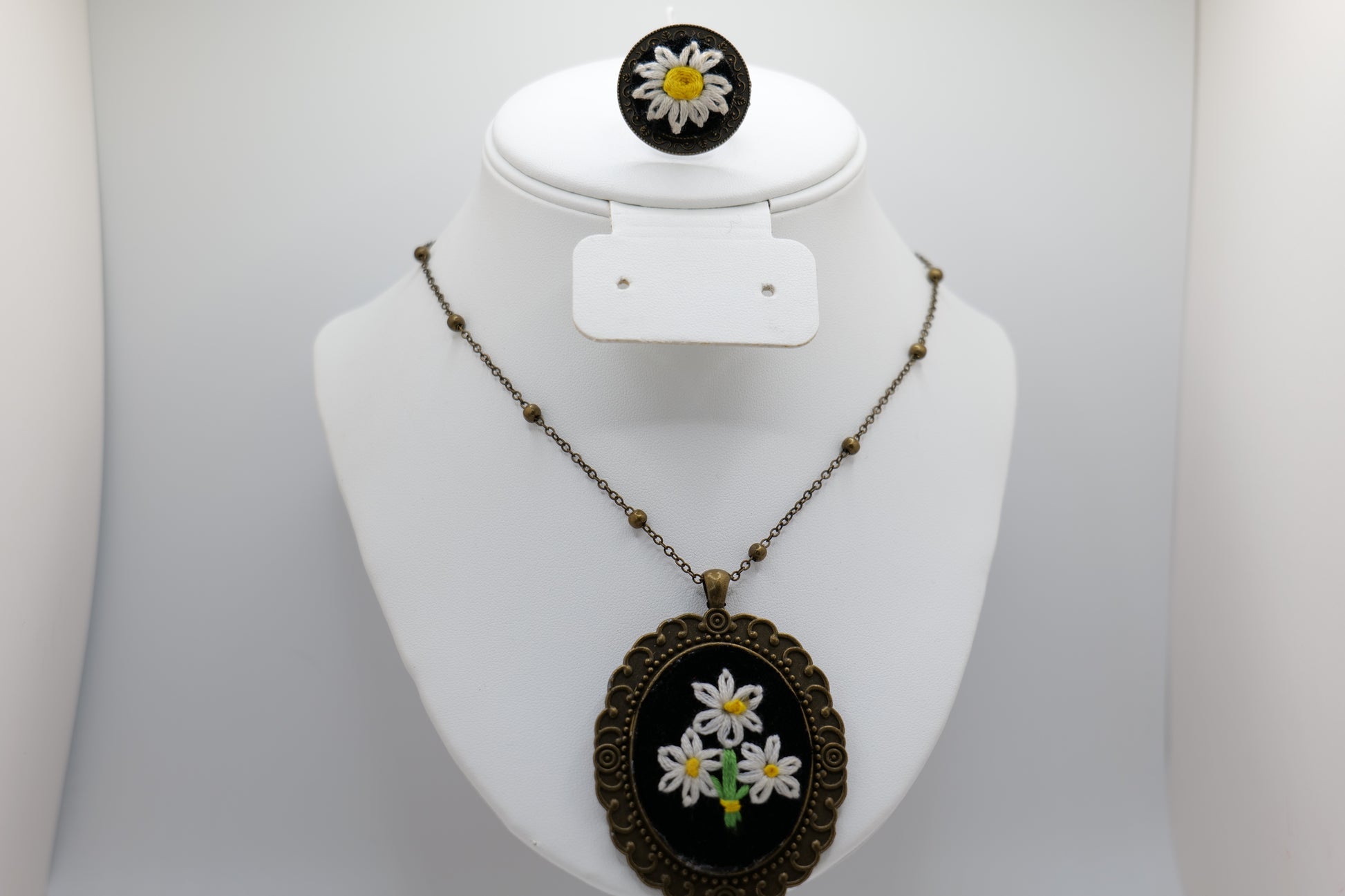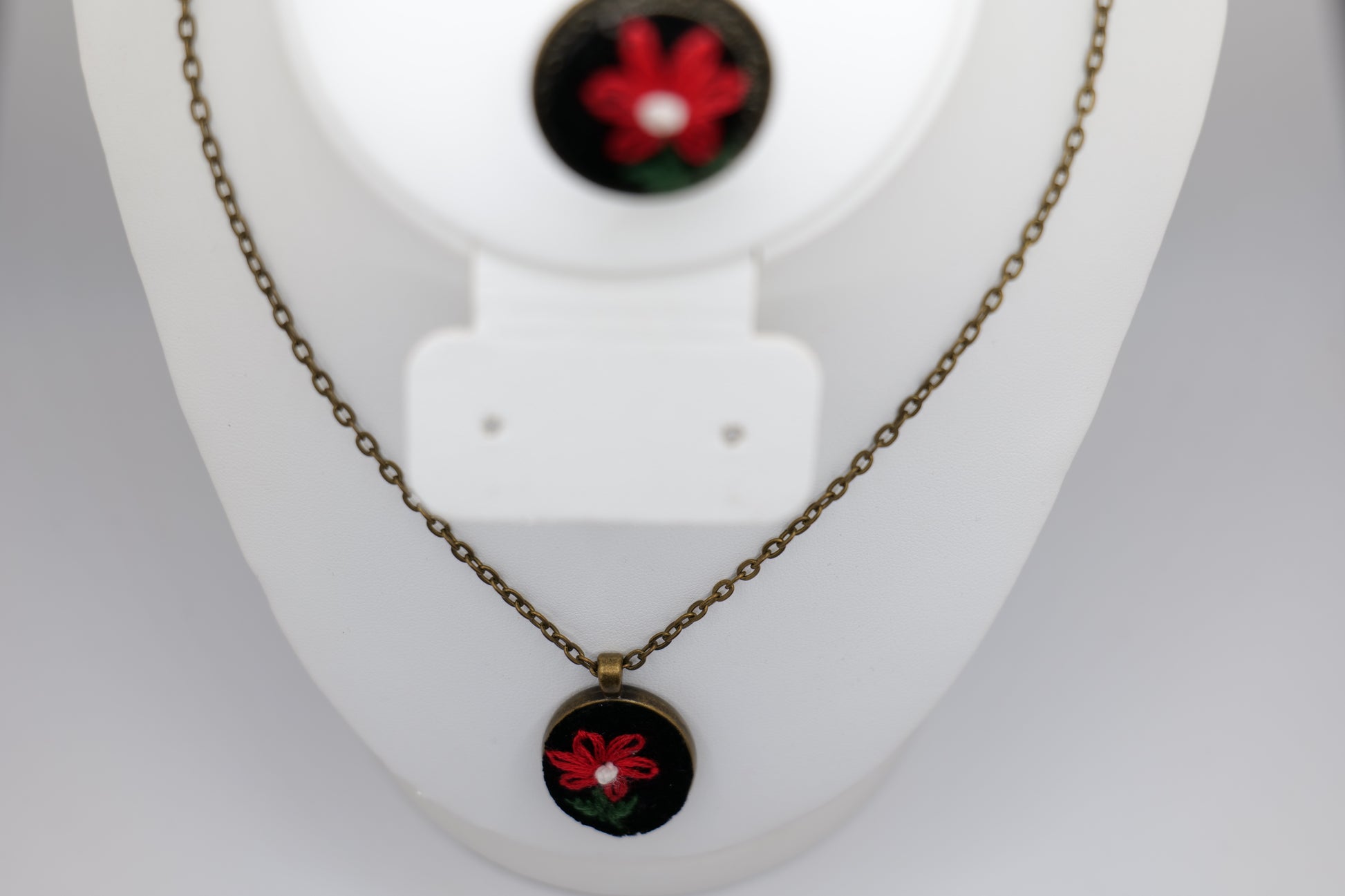These beautiful handmade necklaces from Afghanistan each feature a bronze pendant adorned with delicate handwoven floral embroidery using colorful yarn. Handcrafted by Afghan women, each piece is a unique and meaningful gift that supports traditional craftsmanship and women’s livelihoods.