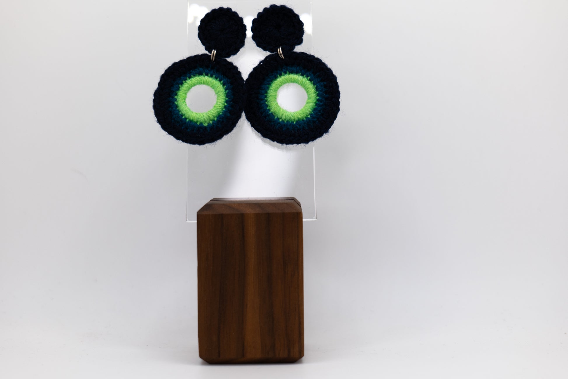 Delicate and festive crocheted earrings in green and black showcase Afghan women’s craftsmanship. Each pair supports independent artists and empowers women.