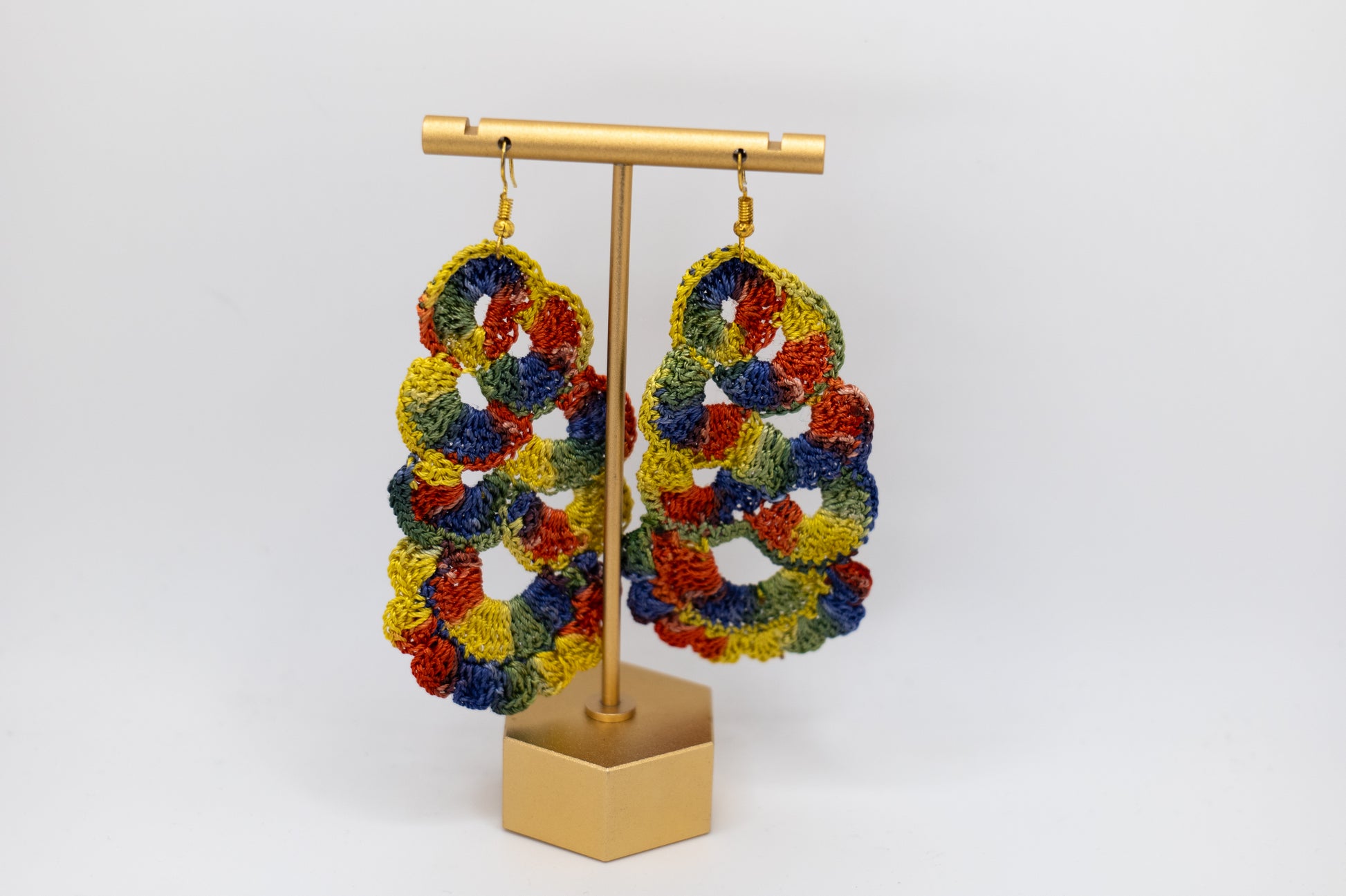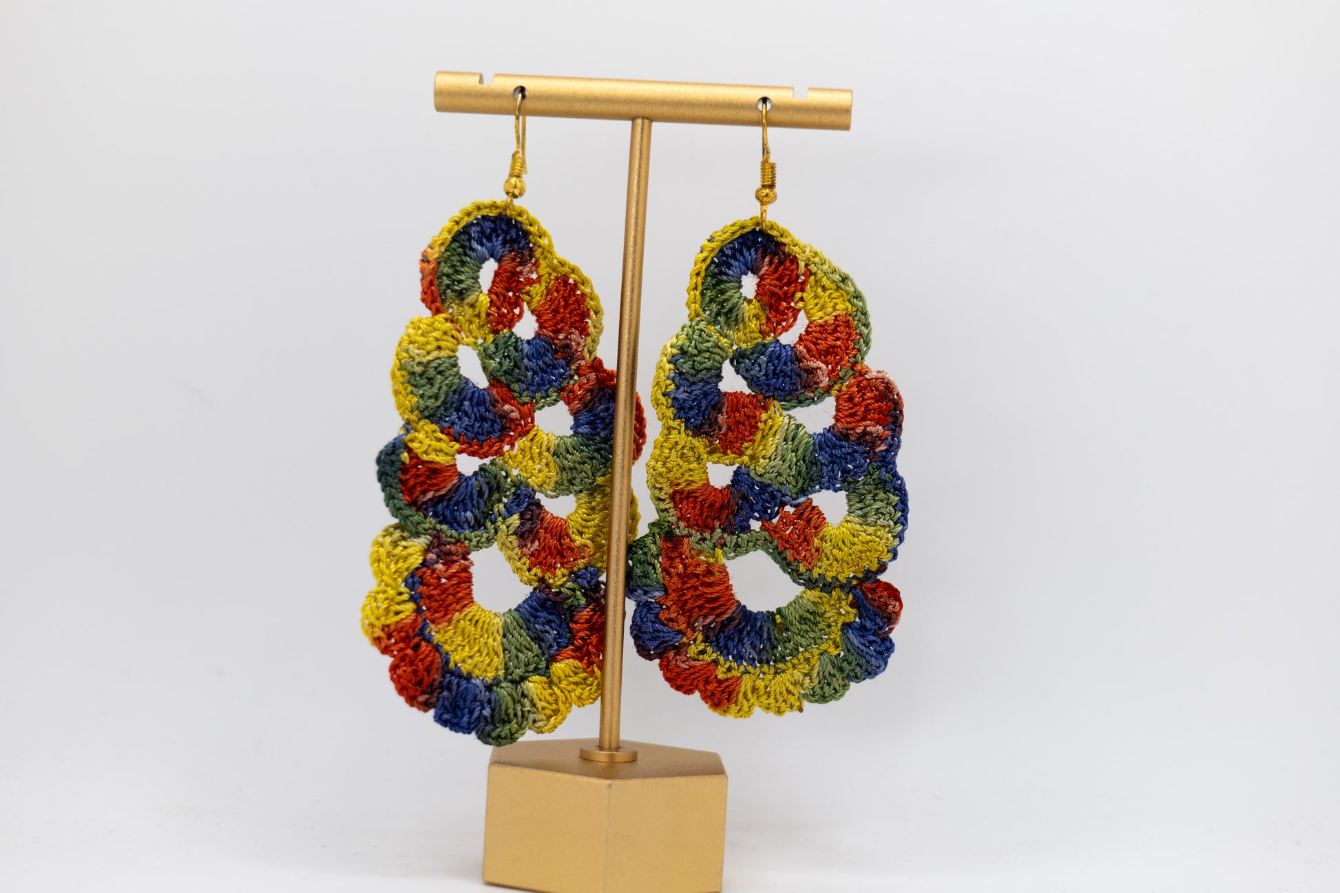 Handmade Long Flower Crocheted Earrings – Crafted by Afghan Women