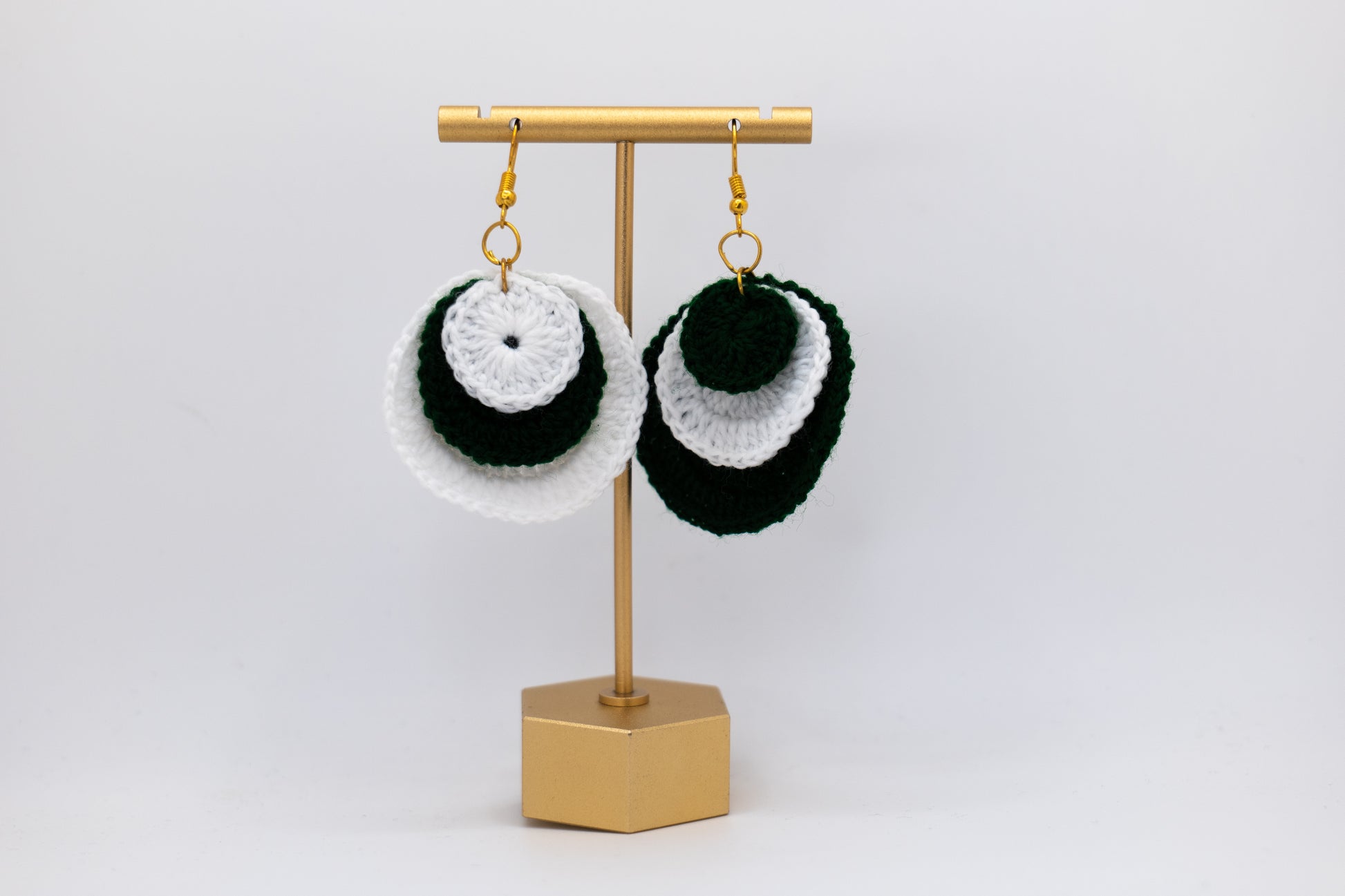 Handmade White and Green Crocheted Earrings – Crafted by Afghan Women