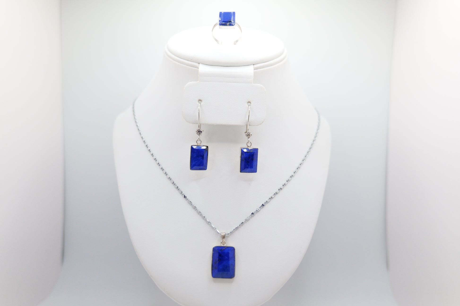 This stunning Lapis lazuli jewelry set is handmade in Afghanistan and features the beautiful deep blue gemstone, known for its healing and spiritual properties. The set includes a necklace, bracelet and earrings, all crafted with 925 silver and accented with marcasite for a touch of elegance. The rich color of the Lapis lazuli stones is sure to make a statement and add a pop of color to any outfit. This set is perfect for those who appreciate unique, handcrafted jewelry with cultural significance.