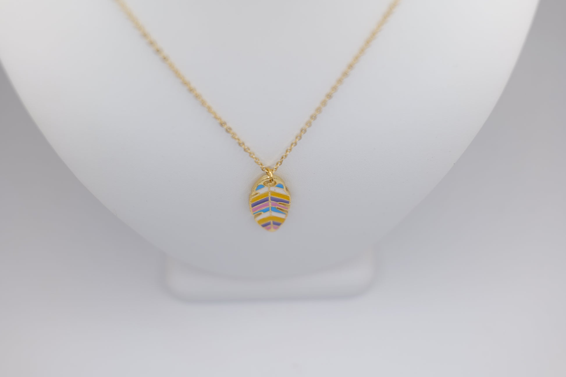 This necklace adds a playful pop of color to your jewelry with painted glass.