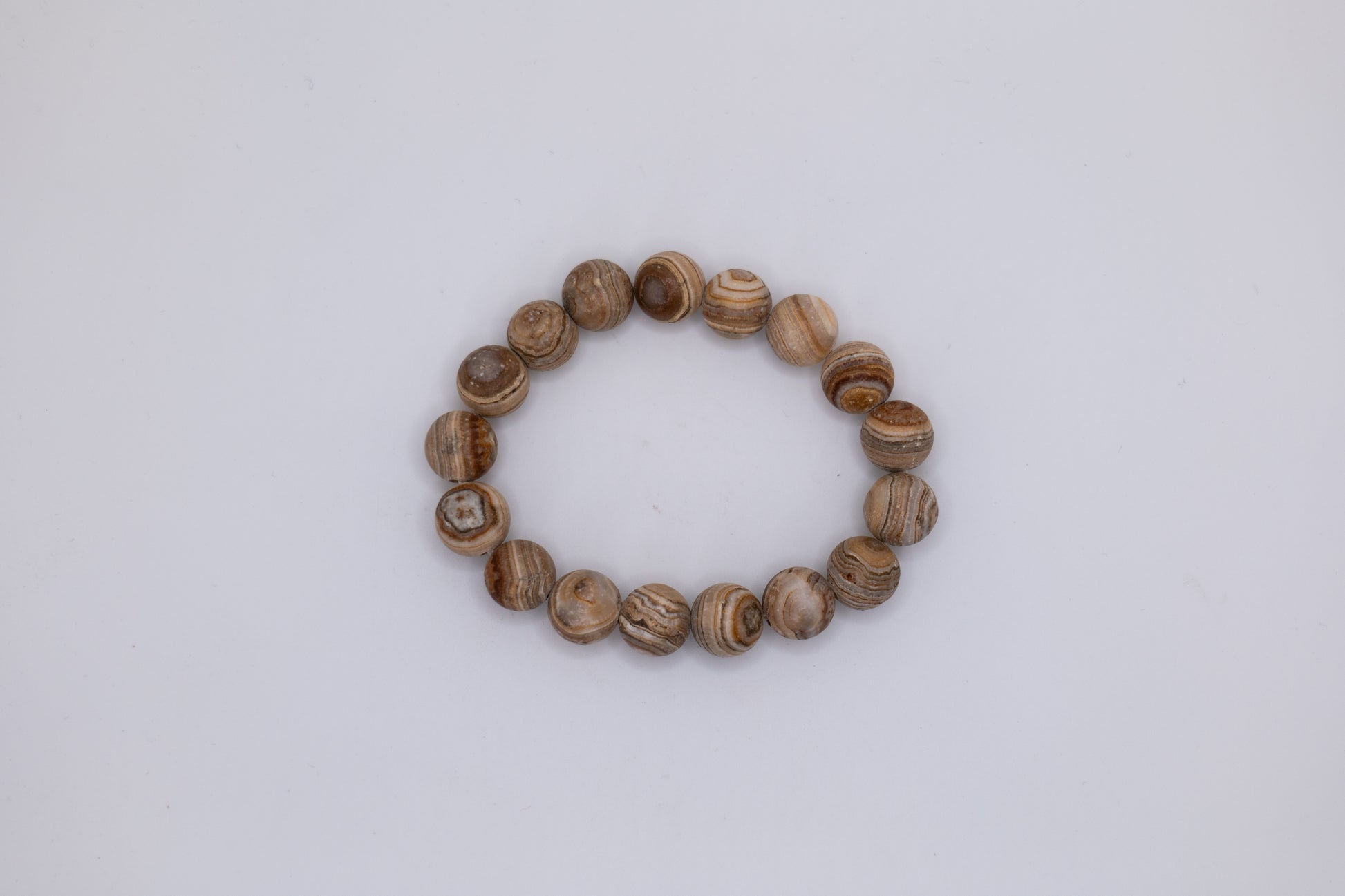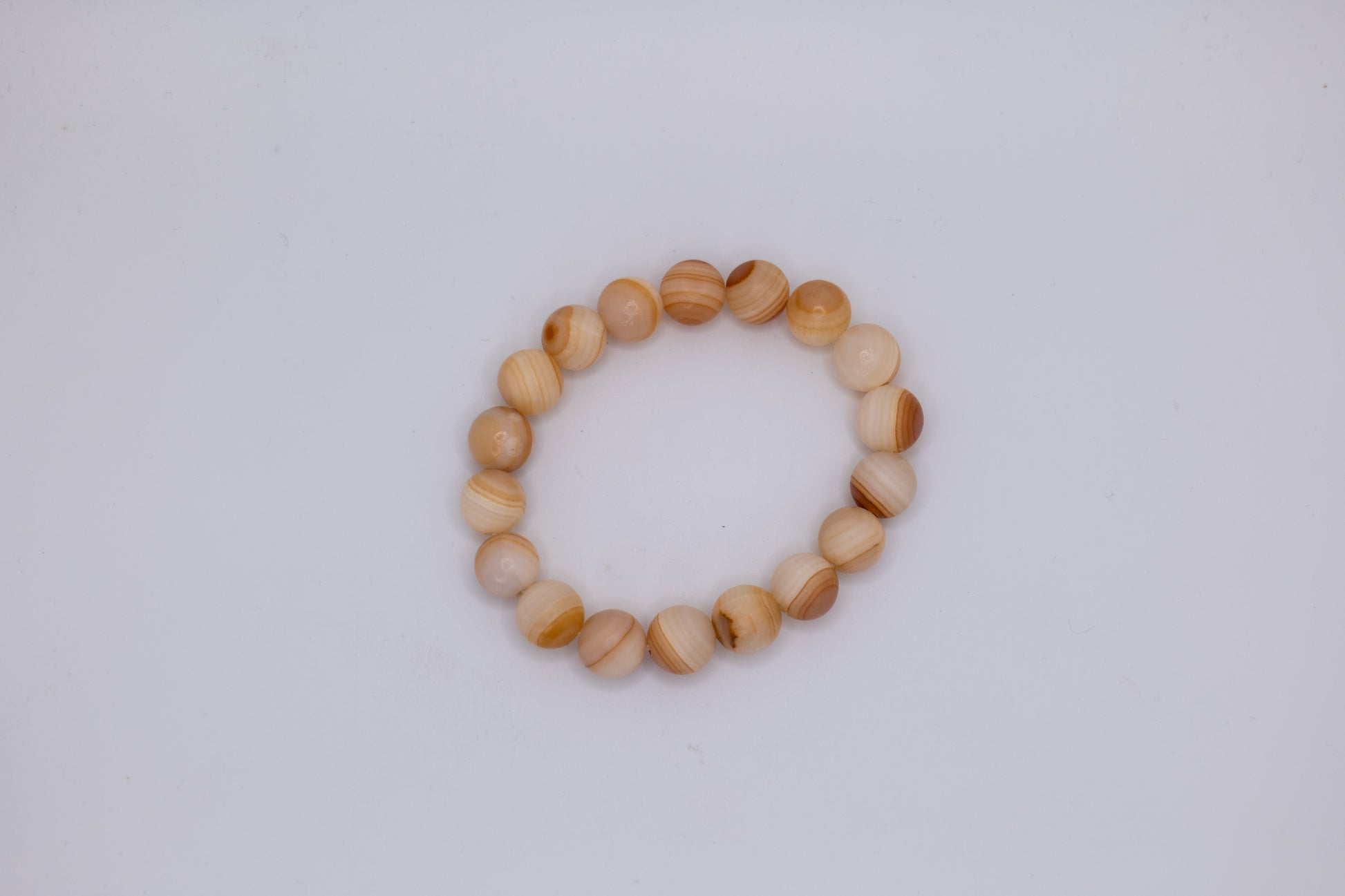 Elevate your style with this unique, handmade onyx bracelet, crafted by skilled artisans in Afghanistan. The special onyx stone is known for its purifying properties and positive energy. Featuring high-quality, carefully selected stones, this elegant piece highlights the natural beauty and craftsmanship unique to the region. Each bead features beautiful beige coloring with unique bands, creating a truly one-of-a-kind accessory. We offer four different styles of the onyx bracelet based on the hue of the onyx ranging including dark brown, rosy brown, creamy brown, and brown and white striped stones. The onyx colors create a sophisticated and timeless look, perfect for both casual and formal occasions. Make a statement with a bracelet that embodies both tradition and contemporary style, and don't miss out on this stunning piece of jewelry that brings a piece of Afghanistan's rich culture and tradition to your wardrobe.