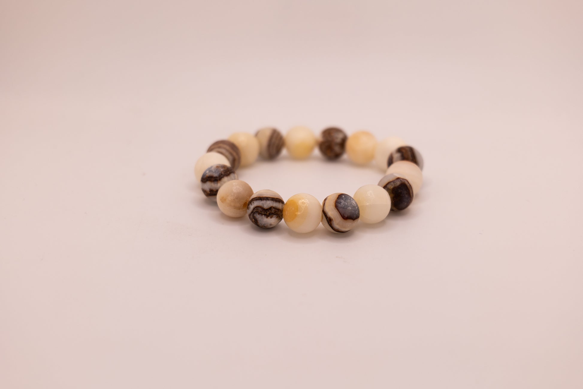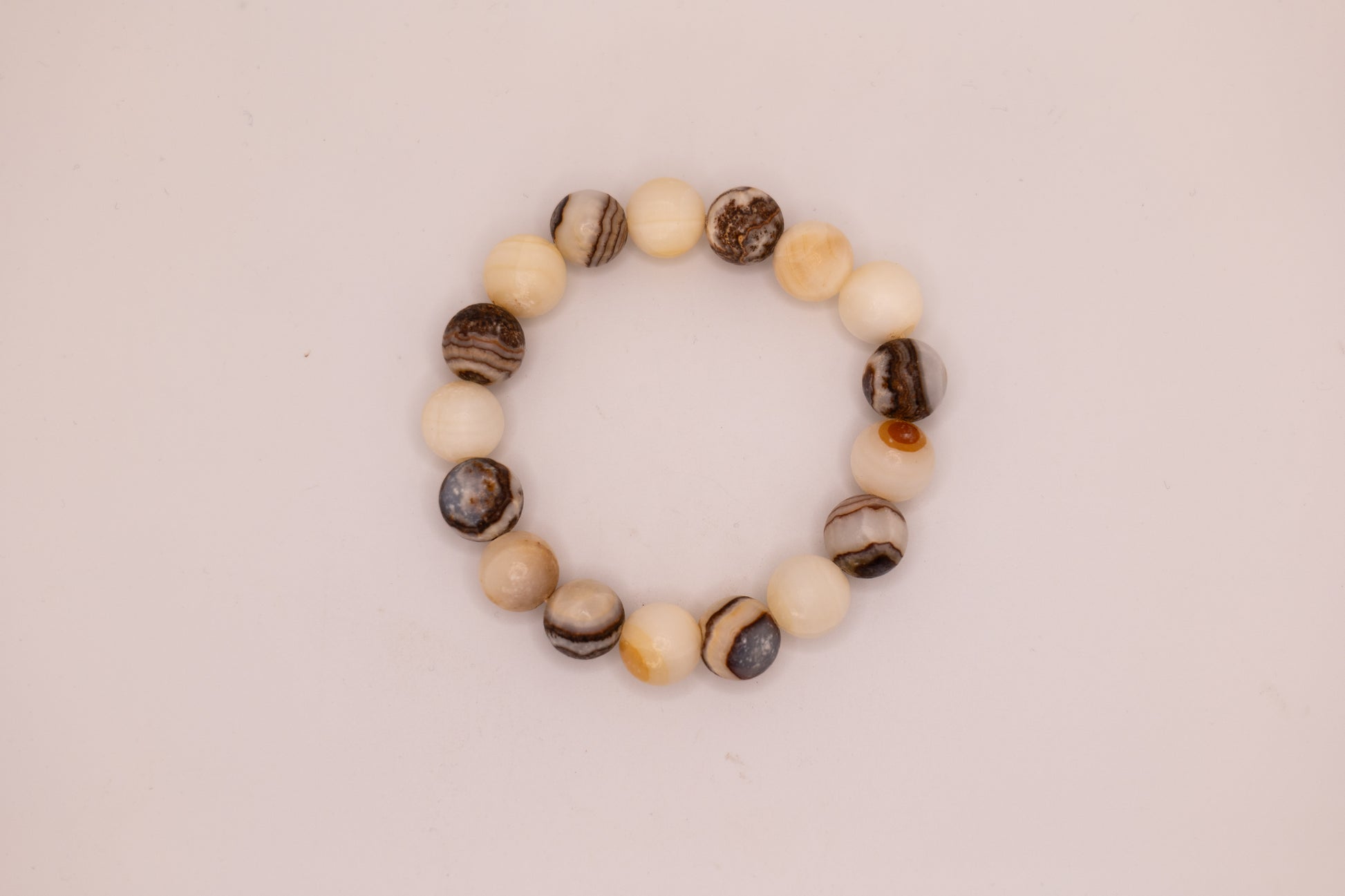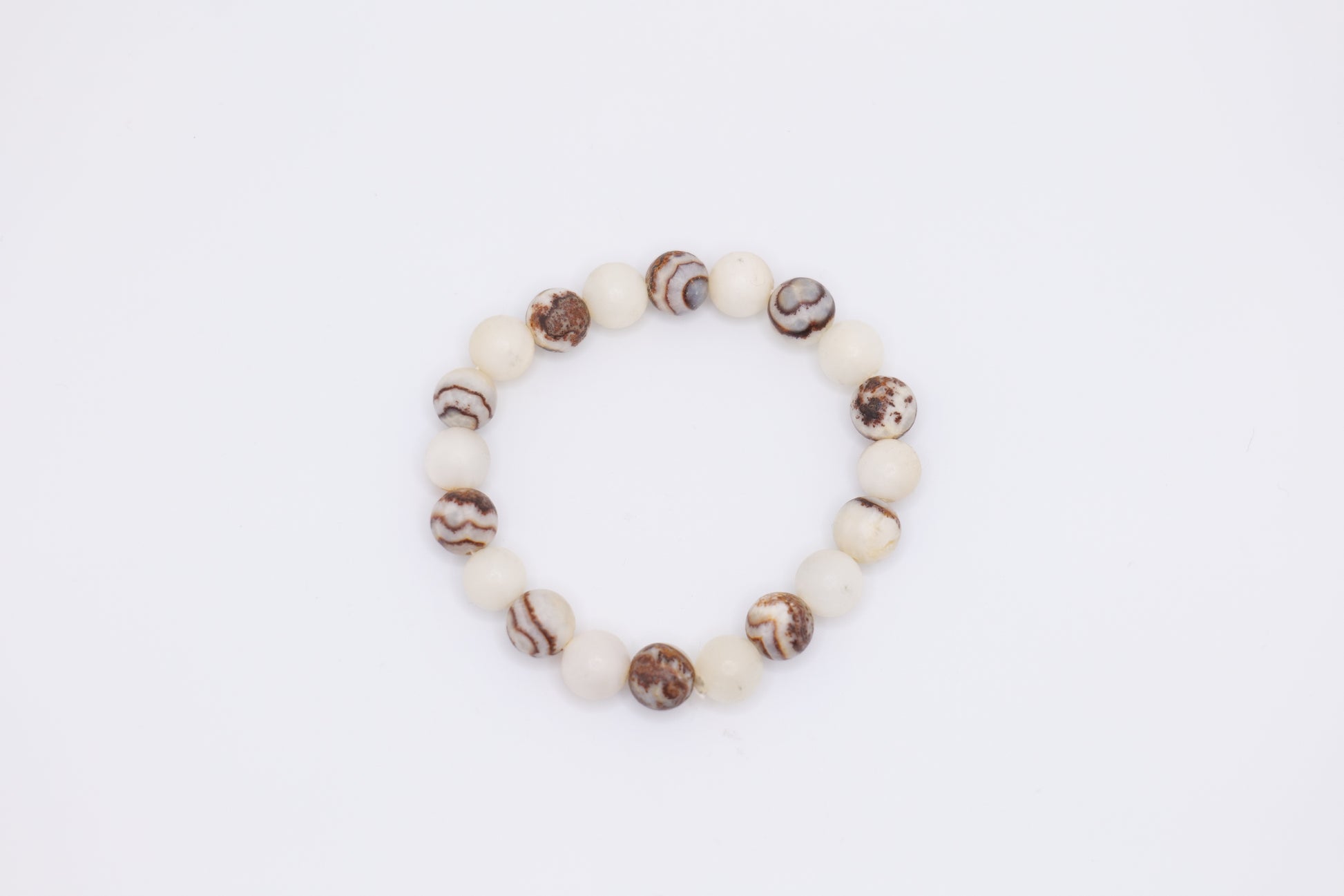 Add a touch of elegance to your wrist with our handmade onyx and white marble bracelet. Crafted by skilled artists in Afghanistan, each bracelet is truly one-of-a-kind. The onyx marble, with its chocolate-colored stone, sets this bracelet apart from any other, making it the perfect accessory to elevate any outfit. The smooth, polished beads with their unique texture offer a luxurious and timeless look that will complement any style. Whether you are dressing up for a special occasion or simply adding a touch of sophistication to your everyday look, this bracelet is the perfect choice. We have different style options based off of various stone colors