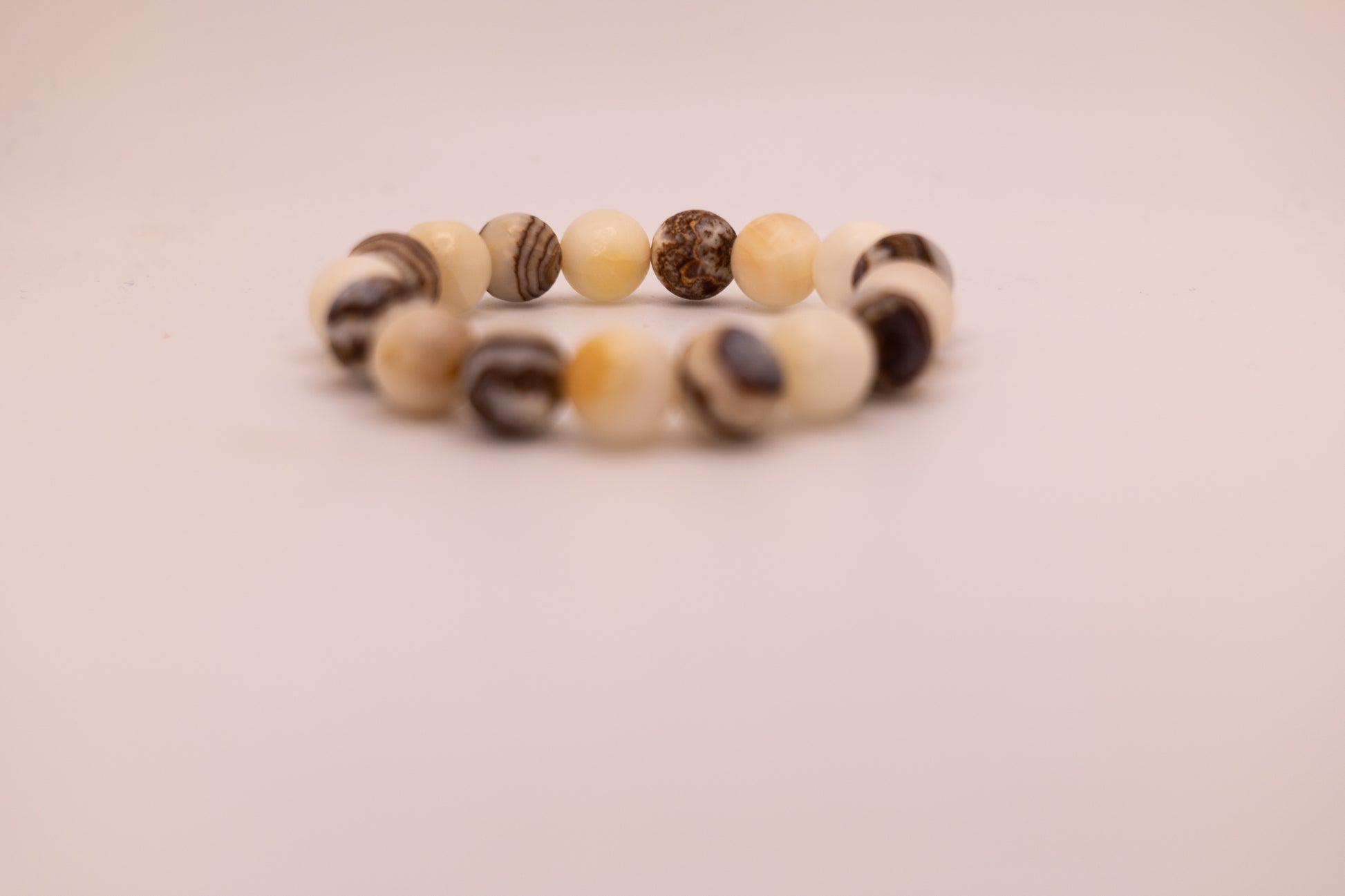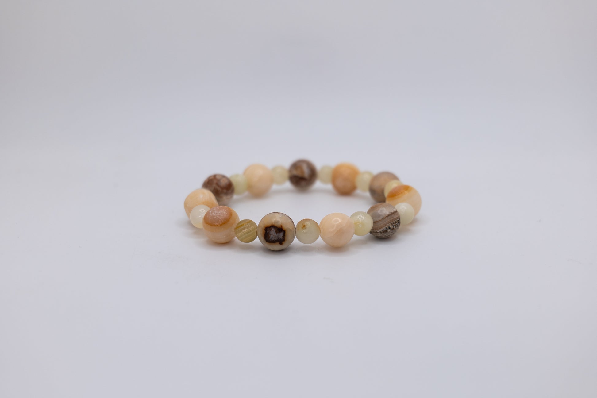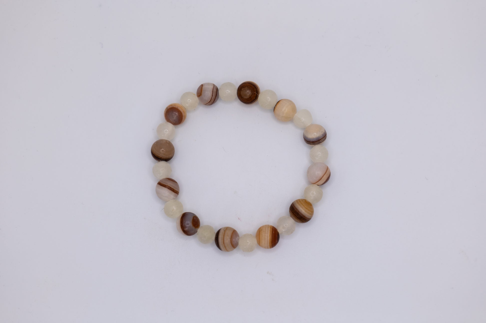 Add a touch of elegance to your wrist with our handmade onyx and white marble bracelet. Crafted by skilled artists in Afghanistan, each bracelet is truly one-of-a-kind. The onyx marble, with its chocolate-colored stone, sets this bracelet apart from any other, making it the perfect accessory to elevate any outfit. The smooth, polished beads with their unique texture offer a luxurious and timeless look that will complement any style. Whether you are dressing up for a special occasion or simply adding a touch of sophistication to your everyday look, this bracelet is the perfect choice. We have different style options based off of various stone colors