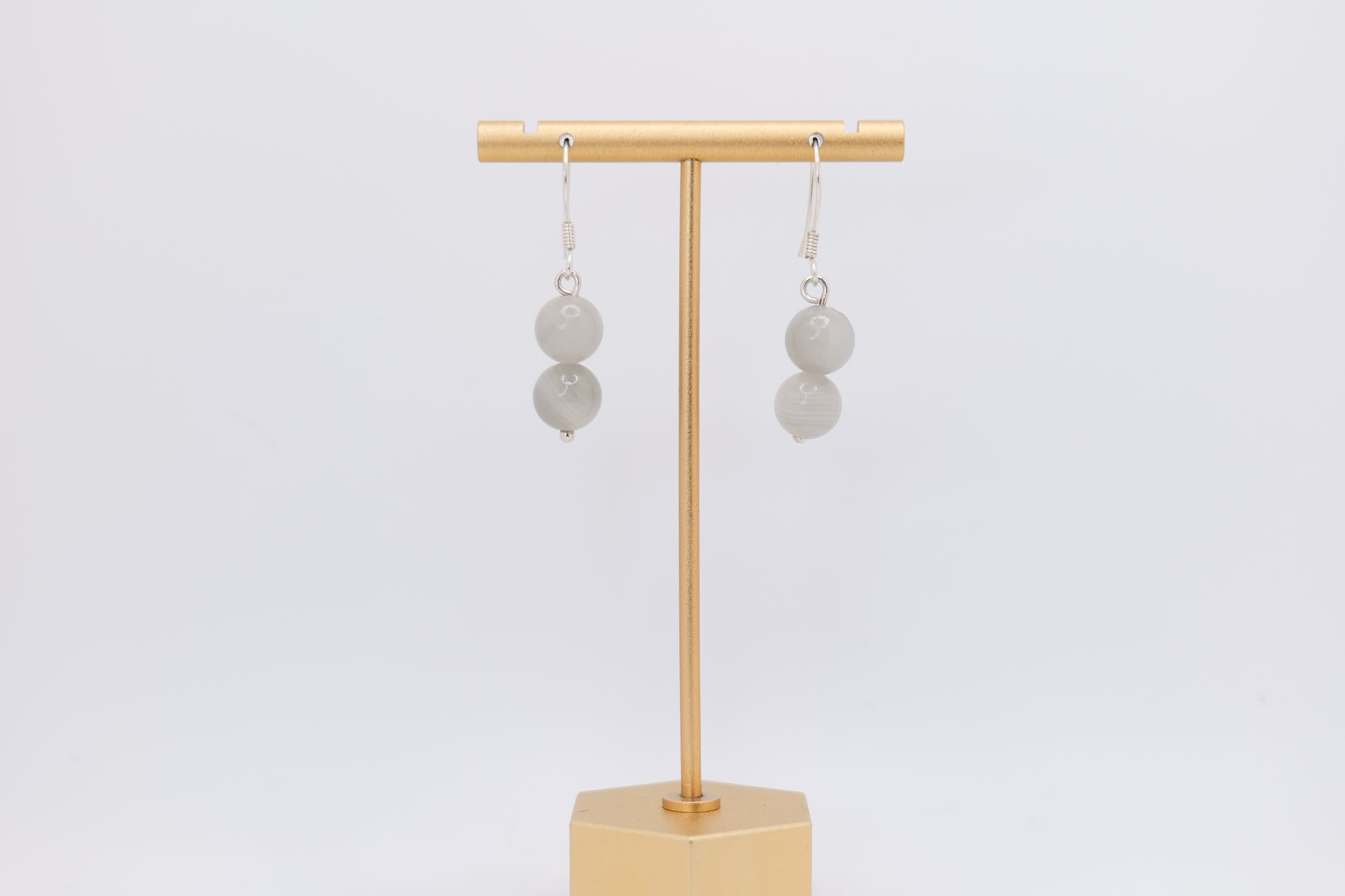 Twin White Marble Earrings with Silver