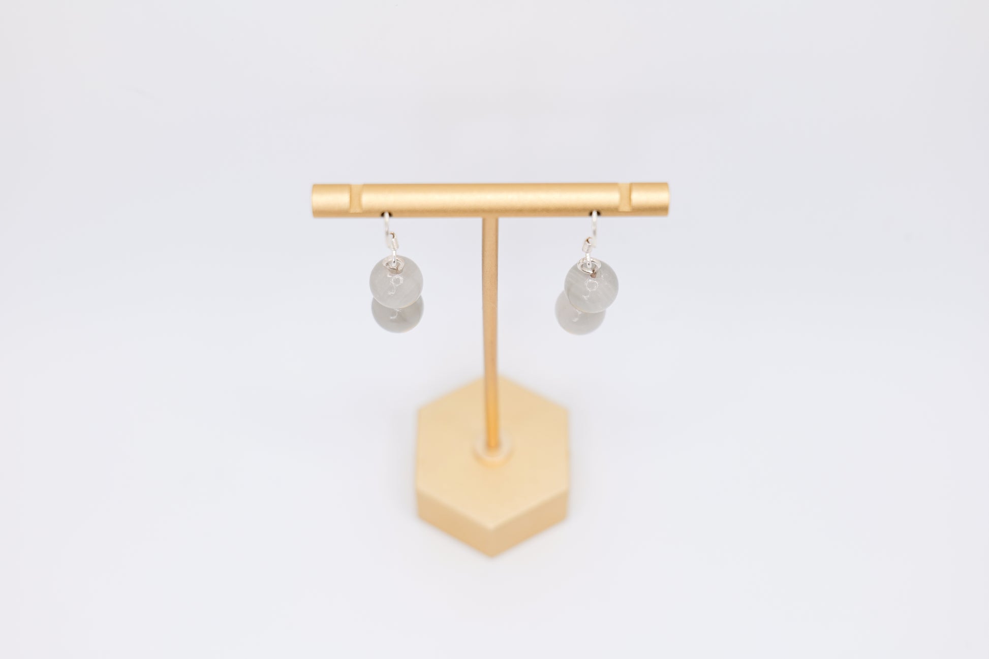 These dainty earrings each contain twin clear marble stones with silver backing. The glassy white appearance make these earrings versatile to match with any jewelry or outfit, while the silver's hypoallergenic properties make them easy to wear with no irritation. Each earring was lovingly handcrafted by skilled artisans in Afghanistan.