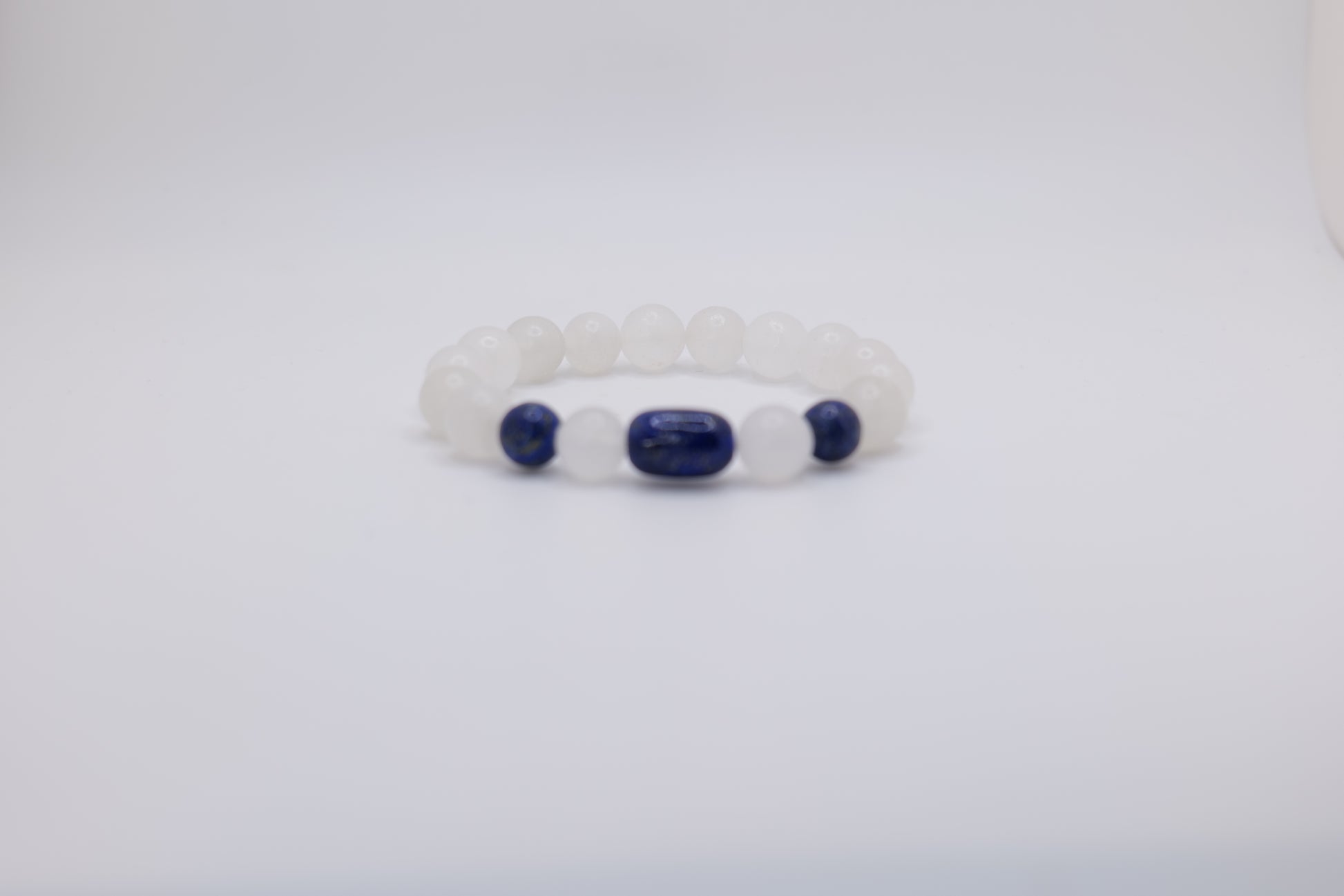 White Marble Bracelet with Lapis Lazuli Centerpieces