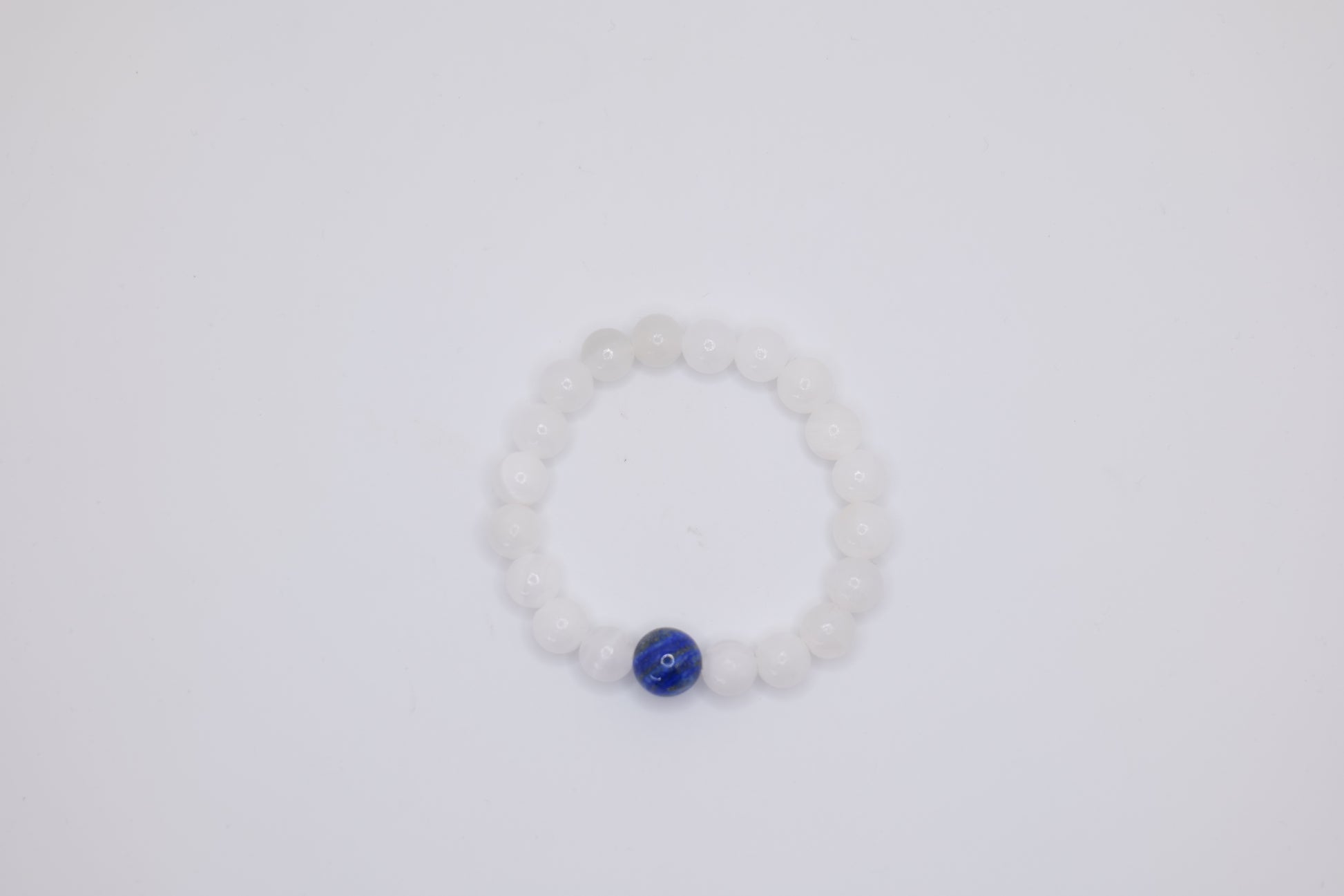 White Marble Bracelet with Single Lapis Lazuli